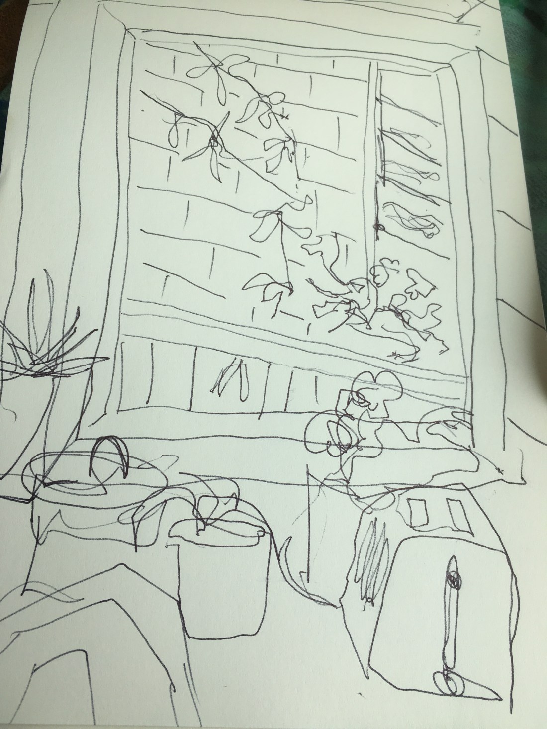 Day 6 drawing Barbara Griffin Uncategorized May 3, 2019May 3, 2019 1 Minute Quick drawing in biro before catching my bus. Kitchen window with plants, fence and brickwork. Share this: Share on X (Opens in new window) X Share on Facebook (Opens in new window) Facebook Like Loading... Published by Barbara Griffin Exploring connections between people working in different disciplines in weaving, poetry and music. View all posts by Barbara Griffin Published May 3, 2019May 3, 2019