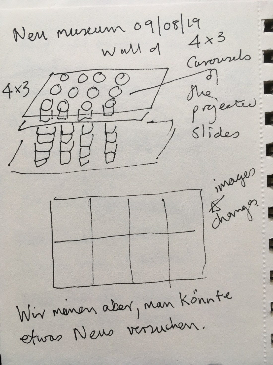Day 100 Barbara Griffin Uncategorized August 9, 2019 1 Minute Drawings and notes in die neu Museum Kassel Share this: Share on X (Opens in new window) X Share on Facebook (Opens in new window) Facebook Like Loading... Published by Barbara Griffin Exploring connections between people working in different disciplines in weaving, poetry and music. View all posts by Barbara Griffin Published August 9, 2019