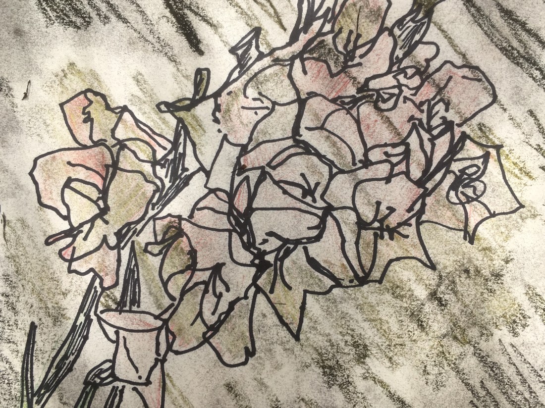 Day 126 Barbara Griffin Uncategorized September 8, 2019 1 Minute Mixed media drawing Sharpie, charcoal, crayon and wax crayon of gladioli. Share this: Share on X (Opens in new window) X Share on Facebook (Opens in new window) Facebook Like Loading... Published by Barbara Griffin Exploring connections between people working in different disciplines in weaving, poetry and music. View all posts by Barbara Griffin Published September 8, 2019