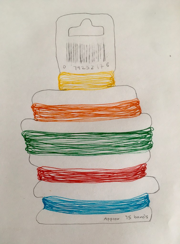 Day 297 Barbara Griffin Uncategorized March 13, 2020 1 Minute Rubber bands. Share this: Share on X (Opens in new window) X Share on Facebook (Opens in new window) Facebook Like Loading... Published by Barbara Griffin Exploring connections between people working in different disciplines in weaving, poetry and music. View all posts by Barbara Griffin Published March 13, 2020