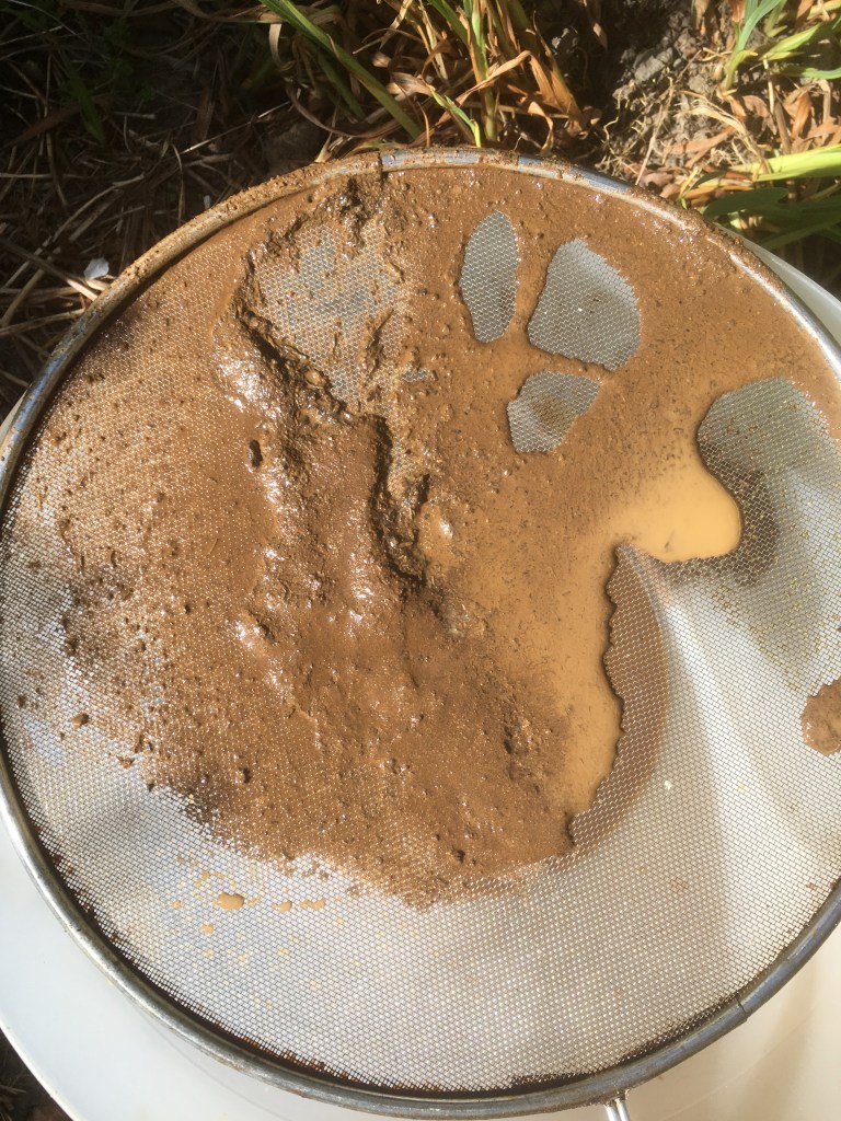 Preparing clay collected by my grandchildren 2017.