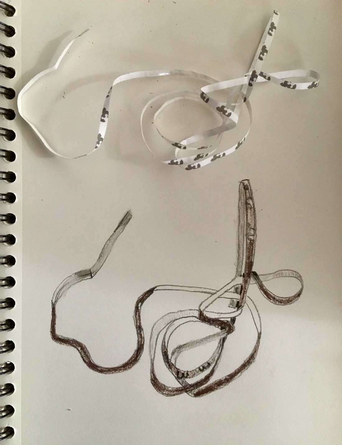 Charcoal and conte drawing of tape from LED lights for the light boxes.