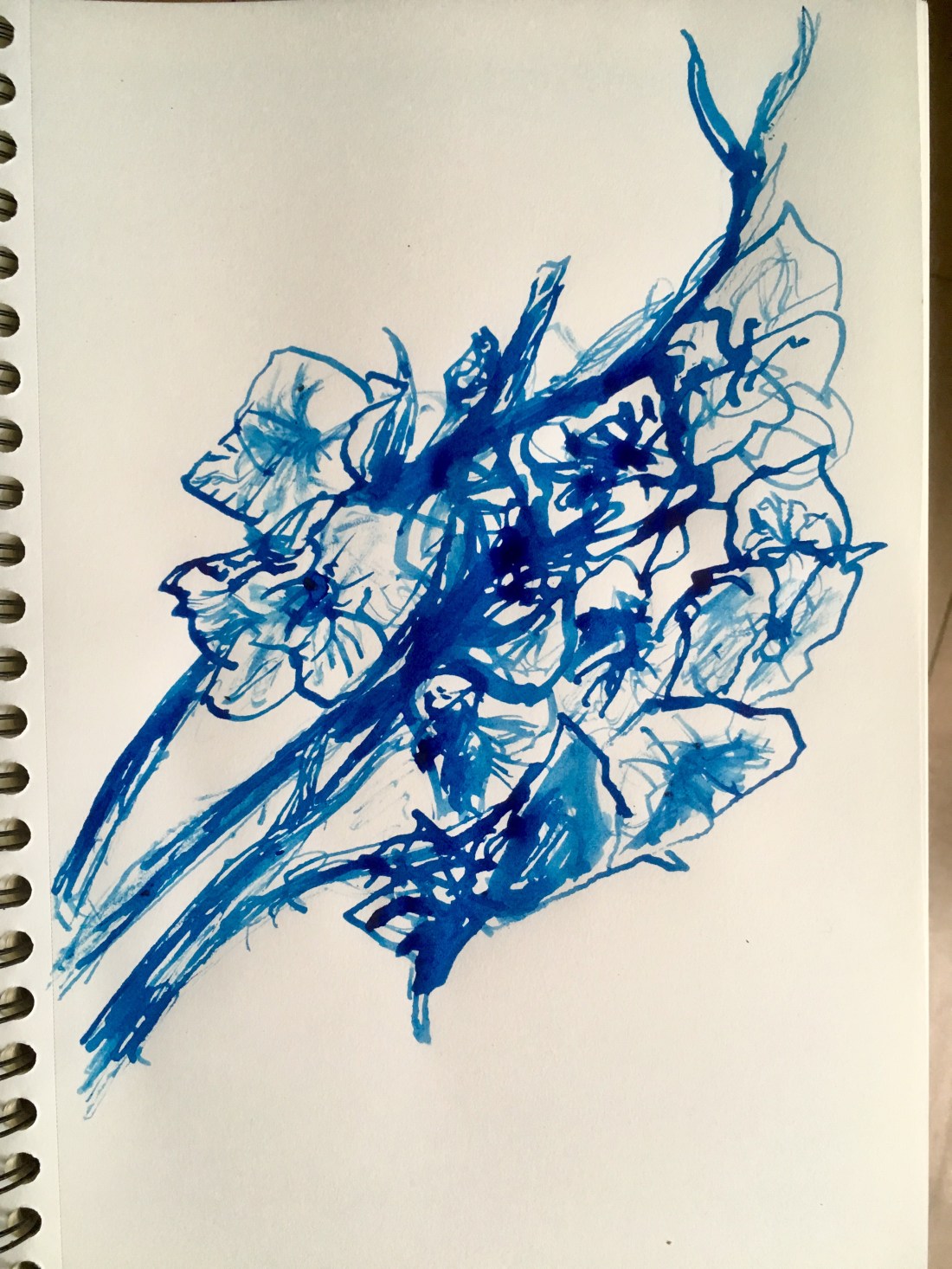 Mixed media drawing Sharpie, charcoal, crayon and wax crayon of gladioli.