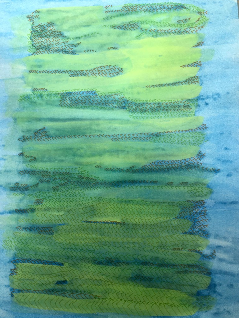 Colour ink on prepared paper